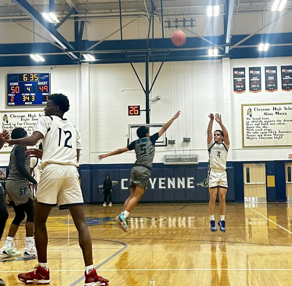 The Cheyenne High School boys basketball team got a thrilling 64-59 victory over Somerset Sky Pointe in North Las Vegas, Tuesday, Feb. 2. After a slow start by both teams offensively, the pace picked up in the second quarter, with the Desert Shields leading 27-26 at half.