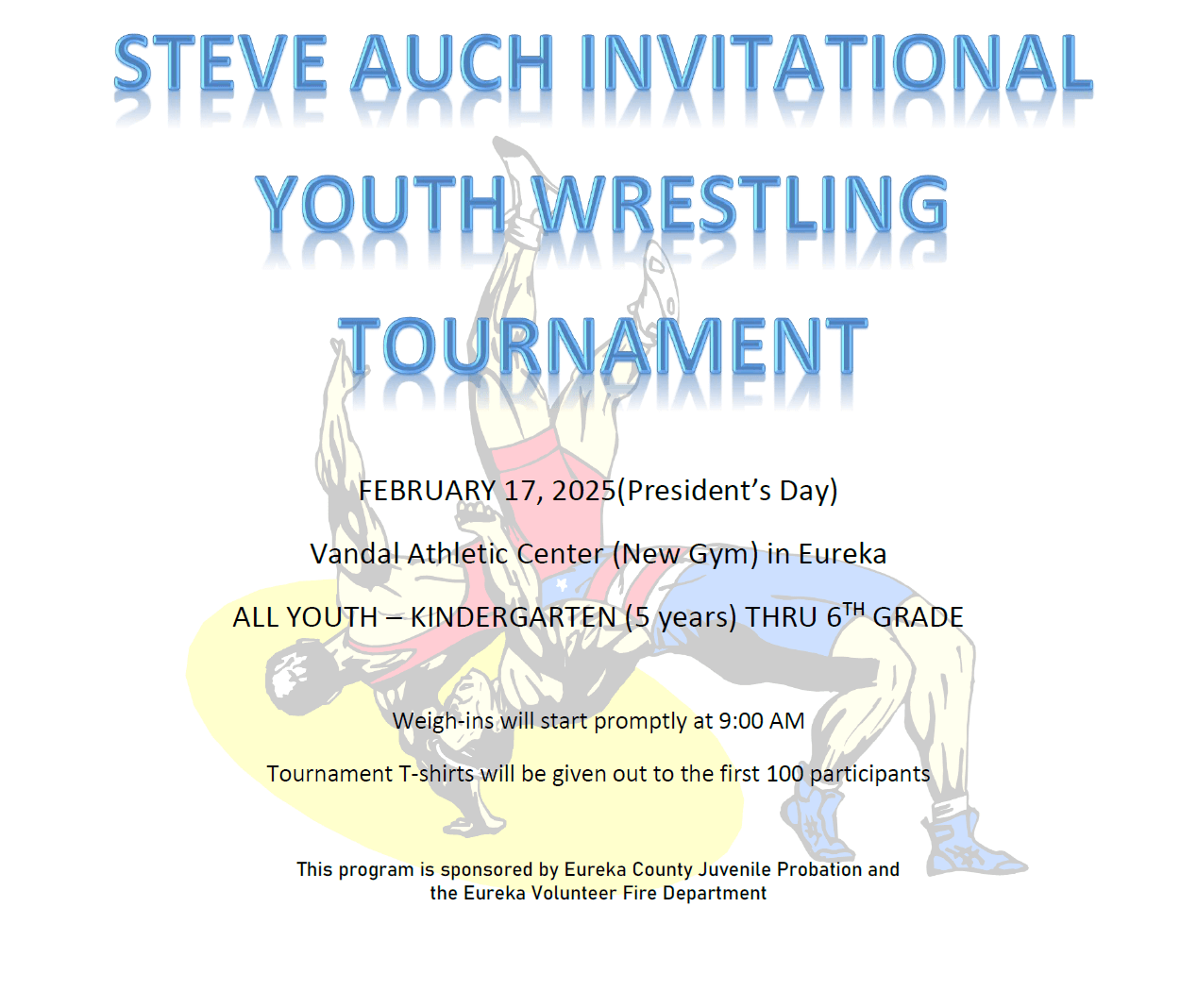 Youth Wrestling Tournament February 17, 2025 @ 9:00 am - 5:00 pm Vandal Athletic Center 1 Vandal Way, Eureka, NV, United States